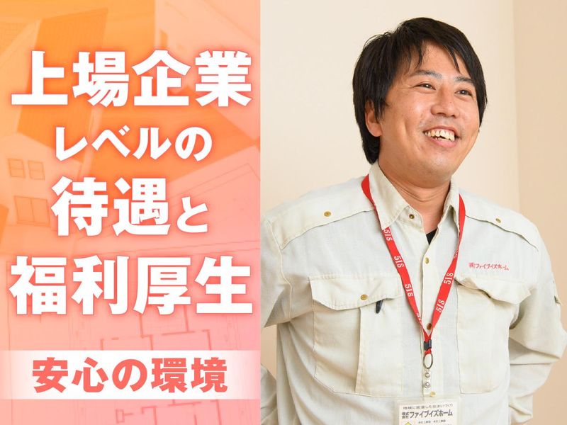 仕事内容 ✅年間休日120日+有給+完全週休2日 ✅健康経営優良法人2023認定◎ ✅くるみん認定の子育てサポート企業 ✅45年連続黒字経営の住宅メーカー ✅年間1000棟以上を手がける施工力 ✅繁忙期以外は残業月平均20h以下 ✅家族・役職・資格手当、退職金制度有 ✅賞与年2回+手厚い待遇・福利厚生 ✅学歴不問・未経験OK・第二新卒歓迎 ✅施工管理・建築、建設現場の経験者優遇 +・+・+・+・+・+・+・+・+・+ ✨✨春からの新メンバーを大募集✨✨ 45年連続黒字経営の地域密着の 住宅メーカーとして成長を続ける当社。 待遇や福利厚生に力を入れており、 ライフステージの変化に合わせて 長く働き続けられる会社を目指しています。 関西の拠点としては、 尼崎店を始め、昨年4月に東大阪店、 11月末には吹田店をオープンしました。 年間で1000棟以上を手掛ける 圧倒的な施工力が多くの お客様から信頼を受けており、 関西での事業拡大に向けて、 新しい施工管理のメンバーを募集します。 +・+・+・+・+・+・+・+・+・+ 《 仕事内容 》 企画から携われる自社分譲住宅・ 戸建住宅の建築施工管理をお任せします! 施工管理職も企画段階から携わるケースが 多く営業・工事・設計の全部署が一体と なってより良い家づくりに励んでいます。 【具体的には】 ≪ 工事の流れ ≫ ▼担当物件の情報共有 エリアは大阪・兵庫がメインで、 営業や設計メンバーから情報を引き継ぎ 資材業者さんや職人さんと詳細を詰めます。 ▼工事開始・現場管理 現場の安全性や進行度合い、品質も管理。 基本的には分譲住宅が中心となりますが 1棟1棟丁寧・大切に建築します。 ※注文住宅の場合はお客様と 各工程ごとに6回の立合いを実施。 ▼引き渡し・アフターフォロー →お客様とコミュニケーションを 取りながら家づくりを進め、 引き渡しの際の達成感は格別です。 引き渡し後は、1ヶ月後に再度訪問し 不具合などをチェック。 以後は別の部署が アフターフォローを行います。 ◎情報共有から引き渡しまで 大体4ヶ月間、工事期間は90日間程 ◎年間で担当する棟数は、 入社3年目のメンバーで20~30棟 +・+・+・+・+・+・+・+・+・+ ✨チームワークを大切にできる方歓迎✨ 無資格・学歴・経験は不問! 現場経験や資格者は特に優遇しますが、 何よりもチームワークを 大切にできる方を歓迎します。 営業も、設計も、工事も、 気さくで後輩想いのメンバーが 揃っていますので 安心してスタートできる環境です。 引き渡し後の細かなフォローも 別の部署が担当するため、 現場管理に集中できます。 +・+・+・+・+・+・+・+・+・+ ✨「いい仕事」は「良い環境」がつくる✨ 年間休日120日×完全週休2日制。 繁忙期以外は残業月平均20h以下など 無理な働き方をさせない 快適なワークスタイルを実現しています。 同業界から当社に転職して、 「プライベートの充実度が上がった」 と回答するメンバーがたくさんいます。 「帰りが早くなったね」「休みが増えて 嬉しい」と家族から言われるようになった という声は社内から頻繁に聞かれますよ。 ▼リクルーティングサイト https://www.fiveishome-recruit.com/ ▼スタッフインタビュー https://www.fiveishome-recruit.com/interview/interview02/ +・+・+・+・+・+・+・+・+・+