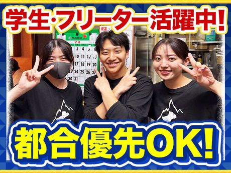 夕方~授業やサークル、ゼミなど学校の予定を優先OK!無料まかない付き♪27卒の学生は卒業までの勤務もOK!