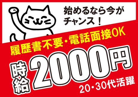 時給2000円の高待遇!更新手当あり!生活家電付き寮完備!食堂・休憩スペース完備!