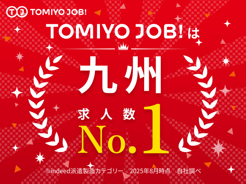 ■アピールメッセージ *トミヨジョブは九州製造求人数No.1* ※自社調べ/Indeed製造カテゴリー (2025年8月時点) 【やってみたいを応援!】 将来を考えて働きたい人にも◎ キャリアアップ・スキルアップも目指せます♪ 長く続けたい方、大歓迎です! 【 職場環境について】 幅広い年代の男性スタッフが活躍中! -制服貸与(無償) -髪型自由 -残業あり(月平均10時間程度) -喫煙所屋外 *<転勤について>* 転勤の可能性がありますが、 住居の手配や事前相談など、 異動時も安心のサポート体制です。 今ご覧いただいている求人は 「無期雇用派遣求人」です! ・派遣会社の正社員として安心雇用 ・待機中もお給与しっかり支給◎ ・勤務地が変わっても雇用は継続 ・安定収入とキャリアを両立可能! 【8388】kumamoto-muki-w