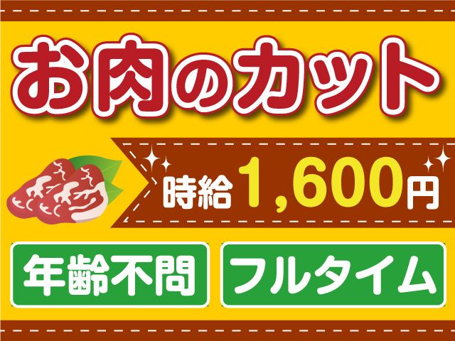 <精肉カット>高時給1,600円 年齢不問/週5日のフル勤務/月収26万円以上