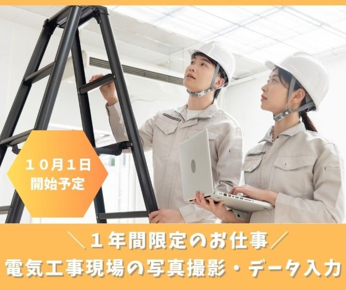 \【急募!現場サポートスタッフ】10月1日開始予定&1年間限定業務/未経験大歓迎!電気工事現場の写真撮影・データ入力@高崎市(寮完備)★20~50代の男女スタッフ活躍中!/(JS)/№872