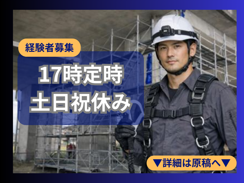 仕事内容 家族との時間をたっぷり過ごせる 土日祝休み・年間休日120日以上の 高速道路の耐震工事スタッフ ★☆左官・防水・断面修復☆★ ★型枠大工・炭素繊維シート工★ ★☆アラミド繊維シート工☆★ いずれか1つ以上の経験者を募集 【求人のPOINT!】 ✨上記の経験・スキルを存分に活かせる ✨経験に応じ日給1万7000円~2万2000円 ✨入社1年目から年収480万円可能☆彡 ✨実働7h・土日祝休み・年休120日以上 ✨ほぼ夜間工事なしで生活リズム安定◎ ・・・・・・・・・・・・・・・・・・・・・・・・・・・・・・・・・・・・・・・ 20代から土木工事をやっているけど 今いる会社は残業と夜間工事が多いし 雨天振替で土日の仕事も少なくない。 今のうちに土日祝休み・定時帰りで 経験を活かせる会社に転職したい! 当社はそんな想いをお持ちのあなたを 心よりお待ちしています。 これまでの経験・スキルを活かして 即戦力として活躍しませんか!? ・・・・・・・・・・・・・・・・・・・・・・・・・・・・・・・・・・・・・・・ ⏩仕事内容⏩ ✅橋脚や構造物の耐震補強工事 ✅橋脚や構造物の左官工事 ✅断面修復工事 ✅防水塗装・シーリング工事 ✅型枠の組立工事 ✅炭素繊維・アラミド繊維の施工 ※稀に出張がございます 高速道路の高架橋を長持ちさせて 地震に強くする耐震工事をお願いします。 左官、防水、断面修復、 型枠大工、炭素繊維シート工、 アラミド繊維シート工いずれかの 経験がある方はその経験を活かせます! ・・・・・・・・・・・・・・・・・・・・・・・・・・・・・・・・・・・・・・・ ⏩社員からのメッセージ⏩ 以前の土木工事会社は夜勤や残業が多く、 家族との時間が取れませんでした。 でもここに来てからは収入を保ったまま 家族との時間を楽しめて生活が安定! 経験をちゃんと評価してくれる会社です。 ・・・・・・・・・・・・・・・・・・・・・・・・・・・・・・・・・・・・・・・ ⏩研修について⏩ まずは作業手順や安全面を確認したり 経験者でも当社の進め方に慣れるまで 横についてしっかりフォローします。 ・・・・・・・・・・・・・・・・・・・・・・・・・・・・・・・・・・・・・・・ ⏩職場環境について⏩ 現在30代と50代の男性社員が2名活躍中。 少人数だから意思疎通がしやすく、 すぐにサポートし合える環境です。 またオンとオフがはっきりしている職場で やる時はやる、休む時は休む社風です。 ・・・・・・・・・・・・・・・・・・・・・・・・・・・・・・・・・・・・・・・ ⏩モデル年収例⏩ ✅年収480万円 ※35歳・入社1年目・一般職 ✅年収550万円 ※40歳・入社5年目・リーダー職 ・・・・・・・・・・・・・・・・・・・・・・・・・・・・・・・・・・・・・・・