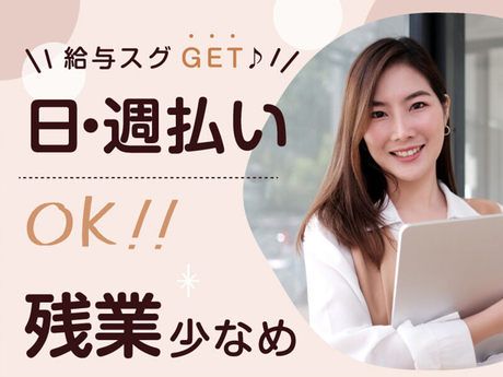 【保険制度】 雇用保険、労災保険、健康保険、厚生年金 待遇・福利厚生 【福利厚生】 【嬉しいメリット】  ̄ ̄ ̄ ̄ ̄ ̄ ̄ ̄ ̄ ・日払い&週払いOK ・交通費支給あり (案件により異なる) ・社会保険完備 ・正社員登用あり ・履歴書不要 ・定期健康診断 ・産休・育休 ・年次有給休暇 【服装について】  ̄ ̄ ̄ ̄ ̄ ̄ ̄ ̄ オシャレも楽しめるオフィスカジュアルでOK!