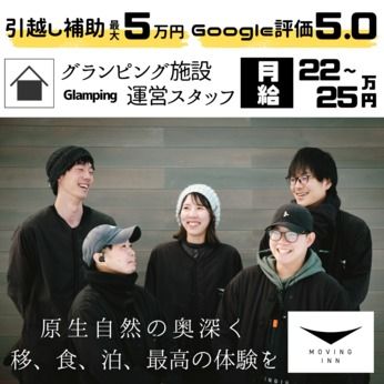 その他 未経験OK、新卒・第二新卒歓迎、長期歓迎、シフト制、昇給あり、賞与あり、交通費支給、車・バイク通勤OK、急募、正社員、Uiターン歓迎、経験者優遇、学歴不問、体を動かす仕事 【ブランド名】 Moving inn 【事業内容】 移動型祝初施設の提供とグランピング・キャンプ施設の運営管理