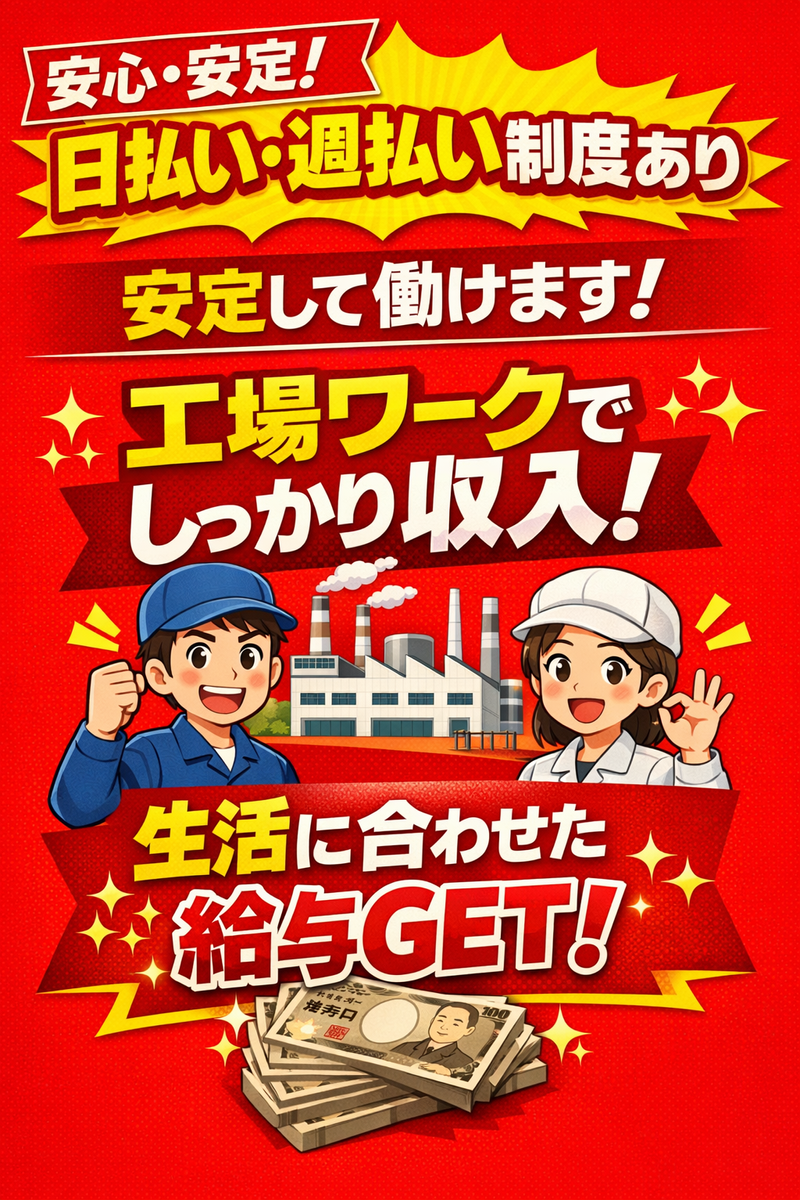 求めている人材 ・未経験から工場勤務にチャレンジしたい方 ・コツコツと丁寧な作業ができる方 ・食品製造に興味がある方 ・2交代制勤務が可能な方 ・チームワークを大切にできる方 ・安定した環境で長く働きたい方 ※学歴・経験は問いません