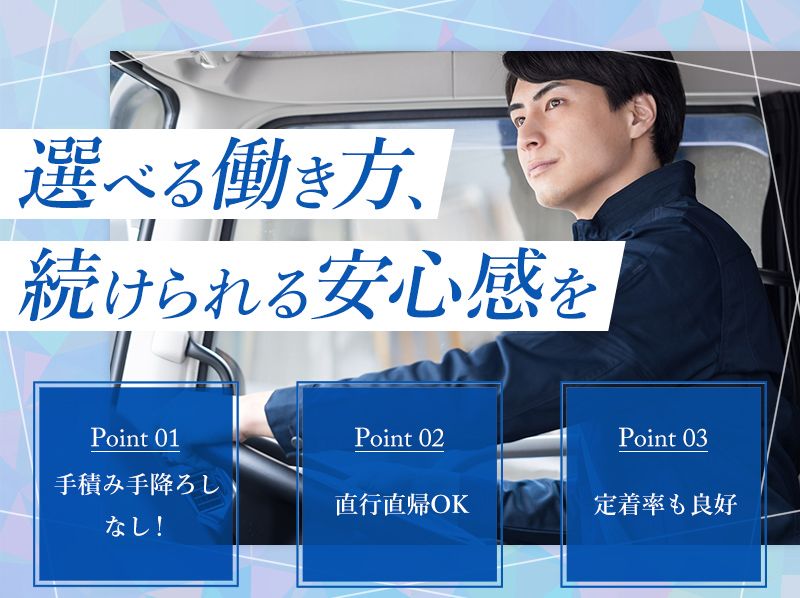 中型免許があればOK!手積み手降ろしなし・直行直帰OKで働きやすい!頑張り次第で稼ぎ充実