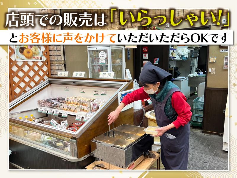 仕事内容 「もうすぐ16時! そろそろ常連のTさんが来るかな~。 あの人はいつも豆乳おからドーナツ2つと白和え。 …あ、いらっしゃい!!」 商店街の中にあるお店なので こんな風に地域の方との 会話を楽しみながら働けます♪ ✅週3日~OK(月曜~土曜) ✅未経験大歓迎!久々のお仕事復帰も◎ ✅シフトの相談もお気軽に♪ ✅お惣菜などが3割引で買える社割アリ! 【お仕事内容】 尼崎の商店街にあるこぢんまりとした 豆腐屋で製造、販売業務をお任せ◎ <製造> お惣菜の製造がメインです。 「製造」といっても、大きな機械を使うことはほぼありません。 人参などの野菜を刻んで炊いたり、 豆腐と和えたり……。 お願いするのは、 いつもの「家庭料理レベル」のメニューばかりです。 レシピ通りの分量で作るので、失敗の心配もナシ! メニュー数も多くなく、 頻繁に変わることもないので、 一度覚えれば、あとは自分の ペースでモクモク集中して進められますよ。 最後にパックに詰めたら完了です! <販売> 販売・レジ打ち業務もお願いします。 気さくな店長がイチから教えるので 未経験の方もご安心くださいね。 ◇現在、主婦さん3名が活躍中です! ◇豆腐工房味八喜多の販売メニュー 豆腐、湯葉、揚げ、お惣菜、おでん、 豆乳おからドーナツなどを販売しています。 ■未経験の方大歓迎◎  ̄ ̄ ̄ ̄ ̄ ̄ ̄ ̄ ̄ ̄ ̄ 製造・接客未経験の方を応援します! ほとんどのスタッフが 未経験の状態からスタートしています。 始めは物腰柔らかな店長が隣につき、 イチから丁寧にお教えします◎ わからないことがあればスグに聞ける 環境ですので安心してくださいね。 入って2、3ヶ月もすると、 だんだんと常連さんの顔を覚えてくるので、 「このお客さんはこの商品を買う人や~」と 顔を見るだけで何を買うかが 分かるようになっているスタッフもいます◎ 「あそこの店セールやってたで!」と 耳寄り情報を教えてくれる常連さんも。 ■シフトの相談もお気軽に♪  ̄ ̄ ̄ ̄ ̄ ̄ ̄ ̄ ̄ ̄ ̄ ̄ ̄ ̄ 基本的に曜日固定シフトですが、 急な子どもの行事や送り迎え、 家族旅行などの予定が入ったときも大丈夫! そんな時はパートさん同士で シフトを自由に交換しています。 子どもがいる方が多いので、 助け合いをしながら働いてくれています。 現在は40代、50代の主婦さんスタッフが大活躍中! ■商店街の中なので雨の日も安心◎  ̄ ̄ ̄ ̄ ̄ ̄ ̄ ̄ ̄ ̄ ̄ ̄ ̄ ̄ ̄ ̄ ̄ 現在は自転車・徒歩で通勤してくれている方がいます。 阪神尼崎駅から徒歩7分とアクセスがよく、 尼崎の三和本通商店街内の お店なので雨の日の通勤もラクラクです。 ご自身の通いやすい方法で来てくださいね。 ■スタッフが長続きの理由は…  ̄ ̄ ̄ ̄ ̄ ̄ ̄ ̄ ̄ ̄ ̄ ̄ ̄ ̄ ̄ 「店長は一見静かな人に見えますが 慣れてくると仕事以外の話にものってくれます(笑) パート同士も仲が良くて、 仕事中に助け合うのはもちろん、 仕事終わりに世間話をしてから帰ることもしばしば。 子育てが落ち着いている主婦さんが多いので 子供や家庭の相談事を話すこともあります。 皆家族にような温かい存在で居心地が良いので 気付いたら4年も経っていました!」 byスタッフ ■店長より  ̄ ̄ ̄ ̄ ̄ ̄ はじめまして、 豆腐工房味八喜多(みやきた)の店長です。 尼崎商店街にオープンして早11年。 常連さんと、長く勤めてくれている スタッフで明るくにぎわうお店です。 『味八喜多』の名前には、 「当店の豆腐を召し上がって頂き、美味しさがお口の中 いっぱいに広がり喜びが多くなれば…」 という願いを込めています。 未経験の方もお気軽にご応募くださいね。 「いらっしゃい」と声かけが出来ればOK!