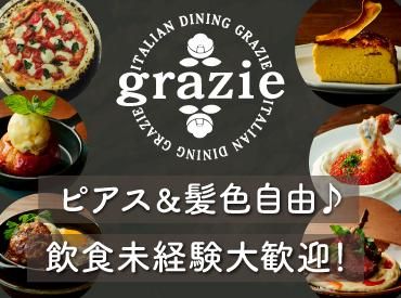 仕事内容 / SNSやTVで話題を集めるオシャレなイタリアン酒場! 東京で初OPENした渋谷駅スグの駅チカ人気店です✨ \ グラッツェ=「ありがとう」。 『ありがとう』の気持ちで溢れた オシャレダイニング「グラッツェ」で、 ホール(接客)のお仕事をお任せします! 昨年8月のOPEN以来、早くもメディアで話題を集め、 Google口コミはありがたいことに2026年2月時点で 674件(星4.8)の評価をいただいています✨ そんな人気のイタリアン酒場のスタッフとして、 素敵な笑顔と接客をお客様にお届けしましょう! 【具体的なお仕事は】 お客様のご案内や料理のご提供、お会計、 予約の受付など、一般的な飲食店での接客のお仕事です。 まずは簡単なお仕事から始め、お客様に喜んでいただける 「接客スキル」を徐々に身に付けることができます! また、誕生日や記念日などお祝い事のサプライズをする機会も多いため、 サプライズのお手伝いなど、いつもとは違った接客を楽しめます! お仕事は先輩スタッフがそばでサポートするので、 未経験の方も安心してご応募くださいね! オープニング募集だから新しいことを始めるのにピッタリ! オープンしたばかりのグラッツェで、楽しくオシゴトしませんか? \グラッツェの「ココ」がイイ!!/ [1]シフト自由! 週1日~、1日3時間~シフト相談OK! 日数や曜日、時間帯なども希望をしっかり考慮しますので、 自分らしく働くことができるお店です。 学校や遊びの予定と両立がしやすく、 学生さんやフリーターさんなどにオススメです! [2]バイトデビューにもオススメ! 学生・フリータースタッフが中心に活躍中! 未経験から始めた同年代のスタッフが多く、 グラッツェで早くも友達ができた人が多数* お仕事は簡単なことからお任せするので、 初バイトの方も安心です! [3]オシャレも楽しめる! 20代のスタッフが多いグラッツェでは、 オシャレを楽しんでいる人も多数! 髪色もピアスも自由です! 制服もカワイイ&オシャレだと大好評* バイトを始めるから黒染めをしなきゃ・・・ なんて心配もしなくても大丈夫ですよ。 (「清潔感」だけは大切にお願いします!)