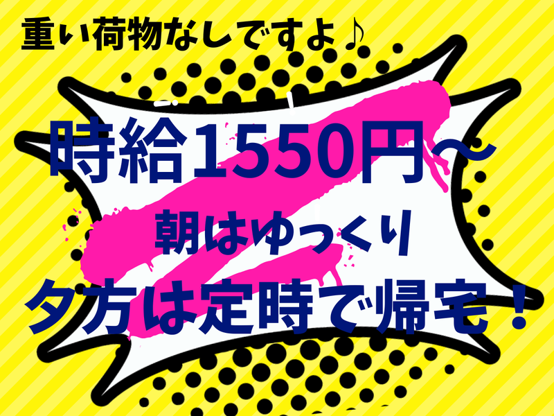 仕事内容 ━━━━━━━━━━━━━━━ フォーク経験がそのまま活きます ━━━━━━━━━━━━━━━ カウンターフォークの 経験があれば、 覚えるのは 倉庫のレイアウトと 製品の置き場所だけです。 難しい新技術は 一切不要です。 ━━━━━━━━━━━━━━━ 重量物の手運びはありません ━━━━━━━━━━━━━━━ フォークリフトでの 出荷・移動・積み込みが 業務の6〜7割を占めます。 重量物を手で運ぶ 作業はありません。 ━━━━━━━━━━━━━━━ 直接雇用の実績があります ━━━━━━━━━━━━━━━ 派遣からスタートして 直接雇用を目指せます。 実績がある職場なので 将来の見通しが 立てやすい環境です。 ━━━━━━━━━━━━━━━ 仕事内容 ━━━━━━━━━━━━━━━ 防水シート・塗料製品の 製造工場での フォークリフト作業です。 フォーク作業(6〜7割) ・カウンターフォークで 出荷作業 ・製品の移動・積み込み ピッキング作業(3〜4割) ・出荷製品のピッキング ・簡単な検品・伝票記入 そのほか付随業務も あります。 ━━━━━━━━━━━━━━━ その他の安心材料 ━━━━━━━━━━━━━━━ ・研修は約1ヶ月 ・マンツーマン研修あり ・土日祝休み ・就業後も担当スタッフが 月2回ほど職場を訪問 ・困ったことは すぐ相談できる環境 ・派遣が初めての方も 安心してスタートできます ━━━━━━━━━━━━━━━ 気になることは 気軽に相談を ━━━━━━━━━━━━━━━ 応募前の質問・相談も 歓迎です。 「求人を見た」と お伝えください。