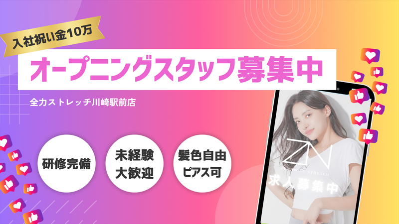 求めている人材 人と話すのが好きで、コミュニケーション力を活かしたい方、自分の努力でしっかり稼ぎたい方、 大歓迎!仲間と励まし合いながら、成長意欲を持って働きたいあなたにピッタリな職場です! ◆ 未経験者大歓迎!「丁寧な研修制度があるので安心してチャレンジできます」 ◎ 未経験でも1から学ぶ意欲がある方 ◎ ご安心ください!あなたのチャレンジ応援します! ◆ スキルアップ・成長意欲のある方! ◎ とにかくたくさん稼ぎたい方! ◎ 評価がしっかり給料に反映する稼げる仕事を求めている方! ◎ 資格を取得してスキルを身につけたい方 ◎ 専門的なスキルがなく将来に不安を感じている方 ◎ 身体のことを学びたい・ストレッチ技術を覚えたい方 ◎ 自分の努力でしっかり稼ぎたい方 ◎ スキルアップや新しい技術に挑戦したい方 ◎ 成長意欲があり、現状に満足せず努力を続けられる方 ◆ こんなあなたを待っています! ◎ 人と話すことが好き ◎ 『友達の相談に乗ることが多い』『人にアドバイスする事が好き』等、コミュニケーションをとることが好き ◎ 人の悩みや辛さをなんとかしてあげたい、人の為に働きたいという想いの方 ◎ 明るく元気で素直な対応ができる方 ◎ 仲間と協力して励まし合いながら働きたい方