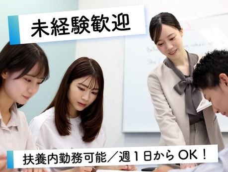仕事内容 ◆ この求人のポイント ◆  ̄ ̄ ̄ ̄ ̄ ̄ ̄ ̄ ̄ ̄ ̄ ̄ ̄ (1)英検(R)準1級以上の英語力をお持ちの方向け (2)未経験歓迎!半数以上が講師初心者! (3)講師デビューにぴったりの充実の研修制度 (4)週1日~&1クラス~でOK (5)20代~50代が活躍中! (6)受講割引制度(最大50%オフ)あり ◆ 仕事内容 ◆  ̄ ̄ ̄ ̄ ̄ ̄ ̄ ̄ ̄ ̄ ̄ ̄ ̄ ECC外語学院にて、英会話・英検(R)・TOEIC(R)コースの授業担当をしていただきます。 <クラスの詳細> ・3ヶ月集中クラス ・通年レギュラークラス ・英検(R)直前対策講座 *いずれもクラスレッスンもしくはプライベートレッスンがあります。 *1クラスあたりの受講者:最大8-10名 ※レベルによって異なります。 ◆ 就業の流れ ◆  ̄ ̄ ̄ ̄ ̄ ̄ ̄ ̄ ̄ ̄ ̄ ̄ ̄ 採用試験や採用後の面談で英語スキルを測ります。 ↓ 勤務スタート直後に能力・経験に応じて研修を実施します。 ※社会人の方も参加いただけるように18時以降で3時間程度、週2,3日のペースで行います。 ※基本教授技術の習得、各コース・レベルの基本手順の理解が中心です。 ↓ 研修合格後は、プライベートレッスンや単発の代講など随時お任せ。 ※初回からお一人で担当していただきますが、トレーナーがフォロー、サポートを行うので、ご安心ください。 ↓ レッスン開始後にも、年間を通じてフォローアップ・ワークショップなどを実施。 <研修の内容> 講師としての指導技術を1週間程で習得していただいた後、 コースごとの指導基準を学んでいただきます。 語学力の研修ではなく、発声の仕方や生徒さんへの接し方のマナーを学んでいただきますので、 「英語力はあるけど人に教えたことはない・・」なんて方もご安心ください。 ◆ 職場環境について ◆  ̄ ̄ ̄ ̄ ̄ ̄ ̄ ̄ ̄ ̄ ̄ ̄ ̄ 各校20代~50代まで、2~3名の学校スタッフが在籍しています。 学校スタッフの他にも、 ・ネイティブ講師 ・韓国語講師 ・中国語講師 ・その他マルチ言語講師 ・日本人講師 などの専門講師がいるため、 様々な言語が飛び交う国際色豊かな環境です。 \以下の方も活躍中/ 子育て中の主婦・主夫さん Wワーク・副業希望の方 フリーターさん 大学院生 「新しいことを始めるのに年齢は関係ない!」と40代でこのお仕事を始められた講師もいます。 培ってきた英語スキルやコミュニケーション能力を活かして働きませんか? 現在活躍中の講師も半数以上は講師未経験からのスタートです〇