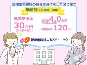 就職支援金あり☆管理業務経験のある助産師の方を募集いたします