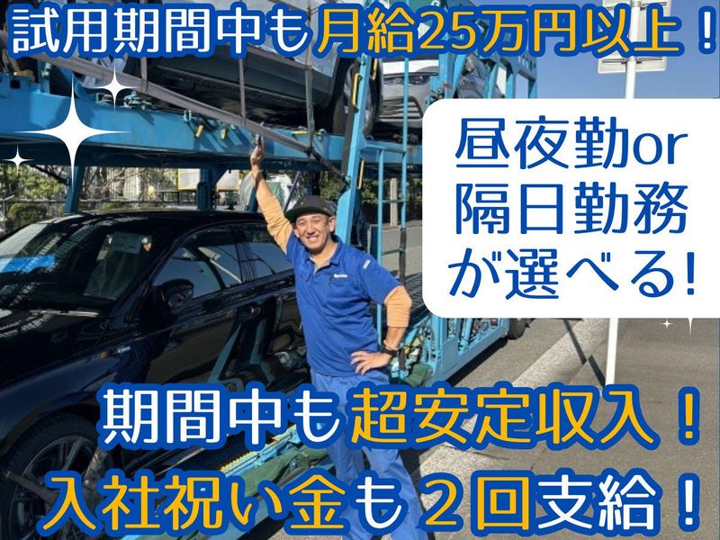 仕事内容 毎日何十件も配送でクタクタなあなたへ! 隔日勤務など選べる働き方! 年収600万円以上で生活の質UP⭐ ―――――――――――――― 例えば、朝6時出勤、夜8時帰宅。 30件の配送でヘトヘト。 土曜も月2-3回出勤。 子供と遊ぶ時間もない... 「もういい加減限界だ」 そう思っているなら、 私たちの話を聞いてください。 愛知からトヨタ車を 丁寧に輸送します。 今の給料次第では年収が2倍になることも! 隔日勤務なども選べます! 昼勤なら子供の習い事のお迎えが できることもあります。 夜勤なら朝の通勤ラッシュを 完全に避けて、 快適に帰宅できます。 「でも転職って失敗したら...」 大丈夫です。 試用期間中も月給25万円。 家族を不安にさせることはありませんよ。 ―――――――――――――― 新設の営業所を 盛り上げてくれる方を大募集✨ ―――――――――――――― 今回募集の営業所は、 2024年5月にできたばかり! どんどんオープニングとしての スタッフが入社してくれている状況ですが まだまだ営業所を盛り上げてくれる人材を募集中です。 立ち上げ以降で11名採用し、 既に独り立ちして活躍しているのは現状6名! 2名は絶賛教育中で、2026年1月より1名の新人さんが 新たに入社予定です。 そのため、今入社しても遅れることなんて まったくありませんよ! 気になる方は是非ご応募くださいね! 【直近の入社実績】 ・2025年11月:27歳 入社 ・2025年12月:27歳 入社 【今後の入社予定】 ・2026年1月:27歳 入社予定 ・2026年3月:31歳・32歳 入社予定 ─────────────── 仕事内容 ─────────────── 「キャリアカー(⼤型トレーラー)」 で、TOYOTA車の配送をお願いします。 愛知県内にあるトヨタの⼯場や 港から、県内や県外への配送になります! 約1年前にできた新設の営業所で 綺麗なトラックを運転できますよ! また、配送エリアは日を跨ぐような 長距離輸送はありません! ※珍しい⾼級⾞などもあり!レア車が 運転できちゃうかも!? □積む台数は6台 □載せる車を運転してキャリアカーに 積み込んだり積み下ろすから、 重たい荷積み‧荷下ろしなし! ⭐1⽇の仕事の流れ⭐ 出勤:点呼 ▼ 広⼤なTOYOTAのモーター プールで積み込み ▼ 出発:ディーラーや 港に⾞を配送 ▼ 帰社:点呼 ※輸送先によって往復の回数が変動する 可能性があります。 ⭐HPはこちら↓ https://anzenyuso.co.jp/ ─────────────── 車両はほぼ製造年度が令和なので、 とてもきれいな車両ばかりです✨ また、社員のことを考えて、 各車両に冷温庫を完備◎ 冬は暖かい飲み物、 夏は冷たい飲み物やおしぼりを入れておけます。 熱中症対策として、 事務所で冷たいおしぼりを事前に準備。 夏場はお弁当などを 冷蔵庫に入れておくと安心です♪ 冬場は温かい飲み物で体を温められますよ◎