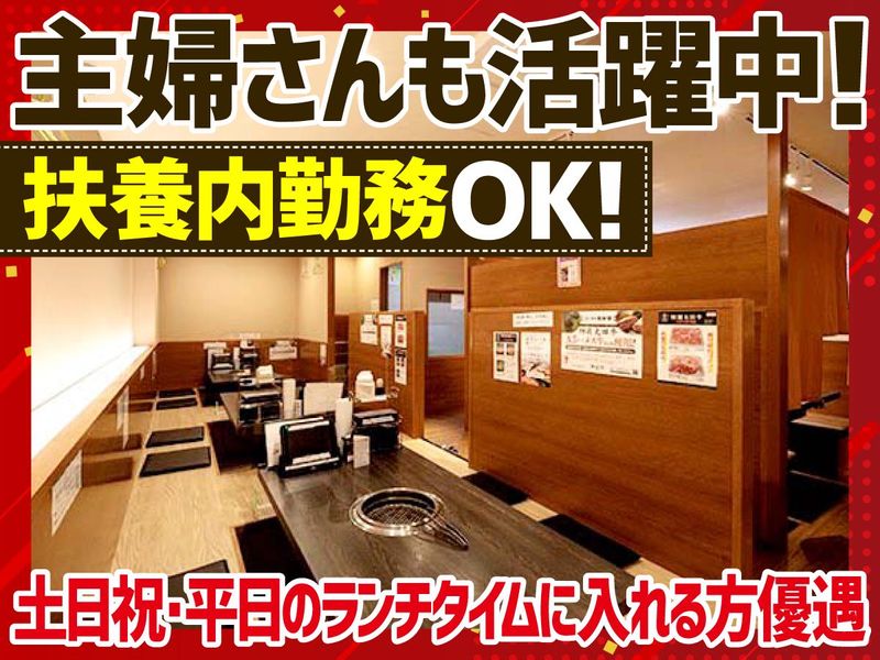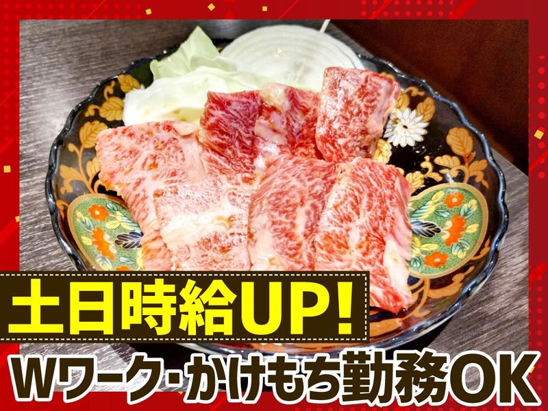 仕事内容 ✅高時給1200円~!しっかり稼げます◎ ⇒昇給あり ✅シフト融通抜群! ⇒学業・私生活との両立◎ ✅絶品まかないあり!勤務後のご褒美に◎ ✅交通費支給 ==================== \土日祝・平日ランチ入れる方優遇!/ 業績好調のため新メンバーを大募集!! 土日祝は時給50円UP!しっかり稼げます◎ ==================== □■仕事内容■□ 焼肉屋でのホール・キッチン業務をお任せします! ▶ホール業務 ・席のご案内 ・オーダー ・料理提供 ・簡単な盛り付け ・洗い物 など ▶キッチン補助 ・カンタンな調理補助 ・仕込み(14時半までの間) など ホールのみの勤務やキッチンのみの勤務も 可能です◎ もちろん、どちらも覚えていただいても 大丈夫です! 出来る仕事が増えればどんどん昇給します! どちらも簡単な作業からスタート! 丁寧に教えますので安心してくださいね♪ 主婦、フリーターメインで活躍中♪ 扶養内勤務や勤務時間などシフトは気軽に相談してくださいね♪ ディナーや土日は学生メインで活躍中です♪