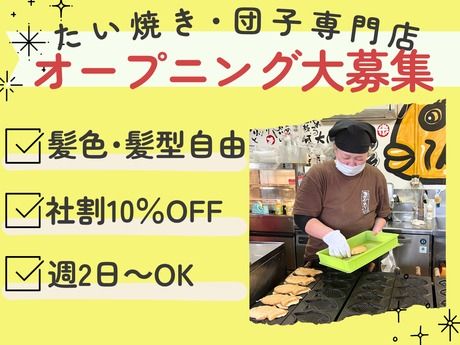 仕事内容 ★12月新規オープン予定★ 週2日、1日3h~勤務OKの超柔軟シフト◎ 未経験歓迎!10~60代まで活躍中♪ ======================== たい焼き・みたらし団子など 和スイーツを提供するテイクアウト専門店 「たい焼き専門店 米乃家 (Yonenoya)」の 製造・販売スタッフ(アルバイト)を募集♪ \メニュー少なめ&シンプルな作業のみ/ 焼いて~♪包んで~~♪「はい!どうぞ!!」 未経験・ブランクの方でも安心して働ける環境をご用意しています♪ ◆仕事内容  ̄ ̄ ̄ ̄ ̄ ̄ ̄ ̄ ̄ ̄ *機械を使ったシンプルな製造作業 *接客やレジの対応 *店内の簡単なお掃除 ...など クルクル回して→お団子完成♪ 型にタネを流し入れて→→たい焼き完成♪ 未経験の方でもスグにできるお仕事です♪ ◆入社後  ̄ ̄ ̄ ̄ ̄ ̄ ̄ ̄ ̄ ̄ テイクアウト専門店ですので、 接客はレジ対応のみ! スイーツの製造もマニュアルがあるので 難しい作業は一切なし♪ 未経験の方・ブランクがある方・ アルバイトデビューの方でも、 スグに活躍できます◎ ==◇==◇==◇==◇==◇==◇== \\未経験◎初バイト&ブランク歓迎// 誰もが、みんな最初は未経験からスタートしてます♪ 出来なかった事が出来るようになるのって楽しいですよね! 私達も同じスタートですので、一緒に成長していけたら良いなと思っています♪ \\超柔軟シフト♪週2日,1日3h~可 // 希望シフト提出で働きやすさ抜群! 平日のみ、週末のみなど都合に合せて働ける♪お気軽にご相談くださいね♪ 学校終わりや、お休みの日に働きたい学生さん・平日の空き時間に働きたい主婦(夫)さんも大歓迎! 年金との収入調整も可能です♪ \\テイクアウト専門でメニュー少なめ// メニュー少なめで製造業務もかんたん☆レシピ通りにたい焼きの餡子を包んだりetc… 誰でも美味しい和菓子が作れます!また、テイクアウト専門店ですので接客も最小限♪ \\髪型・髪色/オシャレOK♪個性を活かせる//  ̄ ̄ ̄ ̄ ̄ ̄ ̄ ̄ ̄ ̄ ̄ ̄ ̄ ̄ ̄ ̄ ̄ ̄ ̄ ̄ ̄ 一緒に働くスタッフさんには、私生活もしっかり楽しんで頂きたいと思っていますので、 髪型・髪色など、全て自由!個性を大事に働けます★(飲食業ですので、清潔感は大切にしています♪) \\全国に180店舗を展開する安心母体// 全国に180店舗を展開する安定した企業が母体なので、 扶養内勤務やライフスタイルに合わせた働き方も相談しやすい環境です♪ 長期で無理なく働きたい主婦(夫)さんにもおすすめです! \\本求人のPOINT// ◆10~60代までの 学生さん・主婦(夫)さんが活躍中! ◆平日or週末のみ/昼のみなど、 好きな時間で働けます♪ ◆未経験OK ◆初バイト&ブランク大歓迎! ◆超柔軟シフト ★週2日、1日3h~勤務可◎ ◆髪色・髪型自由!オシャレもOK♪
