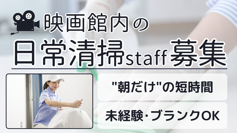 仕事内容 \ 未経験の方も安心の丁寧な研修あり / ”オープン前”の清掃だから、 お客様のいない静かな空間で 自分のペースで作業を進められます♪ ★店内清掃 ・客先ホール床清掃 ・客用トイレ清掃(男女) など 空調完備で快適にお仕事ができます! 勤務地は駅直結なので通勤しやすく いろんなお店が近くにあるので 帰りにショッピングも楽しめちゃいますよ!