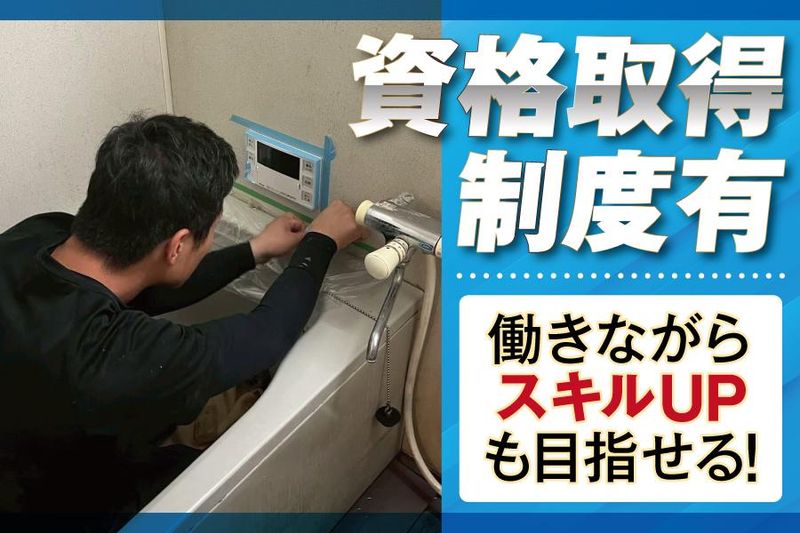 仕事内容 \\ 若手応援◎経験者大歓迎! // ⏩月給30万円~40万円!前職給与も考慮◎ ⏩資格取得制度でスキルUPをサポート! ⏩直行直帰OK!早上がりの日もアリ♪ ―――――――――――――――――― 住宅やマンションなどの個人宅で ガス器具の取付作業をお願いします。 はじめは2人1組で現場にまわり、 ゆくゆくは1人での作業をお任せします! 困ったときはスグに相談できる環境ですよ。 大手企業との取引があり、仕事量は常に安定◎ 同業種からの転職も大歓迎です! ―――――――――――――――――― <働きやすさバツグン!> 給与は前職の収入や経験を考慮します◎ 資格取得制度であなたのスキルアップを しっかりサポート♪ 安定感のある働き方の中で 技術を磨き上げることが可能です。 <スタッフ同士の仲も良好♪> 現在は社長のほか、 ベテラン社員と若手社員1名ずつと、 事務の女性スタッフ2名が在籍しています。 明るく賑やかな雰囲気で、 たまにみんなで食事に行くこともありますよ♪ ―――――――――――――――――― 【 当社について 】 ガス給湯器の販売・施工をメインに、 住宅・マンションのリフォーム (キッチン、バス、トイレなど)のご相談から 様々な内装工事までお任せいただいております。 お客様の要望にも迅速に対応し続け、 お陰様で業績も好調! そこで今回、新たなスタッフを 増員募集することとなりました。