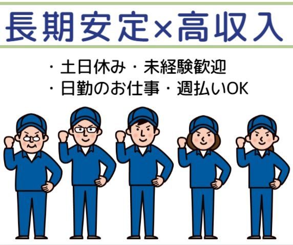 仕事内容 製品の型抜き・機械を利用したバリ取り このお仕事のオススメ条件 ・2か月程度の短期期間、又は長期勤務可 ・エアコンが効いていて涼しい職場の空調完備 ・少人数制の男性が活躍している職場 ・正社員登用の実績あり ・工場未経験でも安心して始められる職場です 働くスタッフさんは皆さん未経験からスタートした方ばかり。 未経験の方の気持ちを理解している先輩社員ばかりなので つまづくポイントを理解しながら、丁寧に教えてくれます。 最初は難しく感じるかもしれませんが、 周りの人たちが丁寧に教えてくれますので安心してお仕事ができます! ・無理なく長く勤められます 冷暖房完備の屋内で作業です! 日勤、土日休みなので無理なく長く勤めることができます。 ・職場見学できます 「興味はあるけど、自分に出来るのか不安…」 そんな方は職場見学に来てみませんか。 実際に職場の雰囲気を体感してみて、働くイメージが沸いたら応募、というのもOKです。 まずはお気軽にお問い合わせください。 POINT 工場未経験の方でも安心 完全土日休み 正社員登用実績あり 髪色自由・ピアスOK 20代・30代男性が約8割が活躍中!