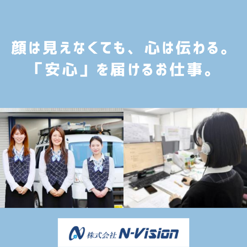 求めている人材 ⏩パソコンの基本操作ができる方 ⏩未経験者大歓迎 【こんな方を待っています】 ・誰かの役に立つ仕事がしたい ・人と話す事が好きだ ・決められた仕事をテキパキこなすのが好きだ ・困っている方に寄り添った対応ができる方 ・キレイなオフィスで気持ちよく働きたい 【お客様志向を大切にして働きたいあなた】 ・仕事の喜びは周りの人の感謝 ・顧客満足度を重視する ・「ありがとう」の言葉が好き ・お客様と接する仕事が好き そんなアナタのスタンスを当社は応援します! 【HPでも当社の魅力を知ってください】 まずHPをご覧いただければ、 当社で働くイメージが湧いてくると思います。 では、当社はどんな会社なのか。 それを知っていただくために、ぜひ 「株式会社N-Vision」で検索してください。 当社の企業理念や代表の思い、 サステナビリティへの取り組みなど、 より当社のことをわかっていただけると思います。 株式会社N-Vision HP ⏩https://h-nvision.co.jp/