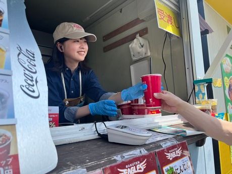 仕事内容 楽天モバイル最強パーク宮城内の売店・キッチンカーで飲食販売♪ 楽天モバイル最強パーク宮城内の売店やキッチンカーにて、ご来場されたお客様へフードやドリンクの販売・提供を行っていただきます。特別なスキルは一切不要です。 <具体的な仕事内容> 球場内の店舗にて、以下の業務をお任せします。 ■カウンター接客・レジ会計: お客様からの注文をお伺いし、キャッシュレス決済の対応を行います。 ■商品提供: 生ビールやソフトドリンクを注いだり、フードメニューをお渡ししたりします。 ★非日常を味わえるエキサイティングな職場★ 職場はプロ野球の試合が行われるスタジアム内です。歓声が響き渡る活気ある空間で働くことができます!普段の生活では味わえない高揚感や、多くのお客様の笑顔に触れられるのがこの仕事の最大の醍醐味です。 野球のルールを知らなくても、お祭りやイベントが好きな方なら存分に楽しんでいただけます(^^)/ ★おしゃれも我慢しない!髪色自由&制服貸与★ 「バイトのために髪色を暗くするのは嫌」という方もご安心ください。髪色は自由ですので、あなたの個性を活かしたまま勤務可能です。 また、スタッフにはデザインが好評のかわいいユニフォームが貸与されます。お気に入りのスタイルで、モチベーション高くお仕事に取り組んでいただけます。 ★自分の予定に合わせて働ける自己申告制シフト★ 勤務シフトは融通の利く「自己申告制」を採用しています。学校のテスト期間、サークルの合宿、他のお仕事との掛け持ちなど、プライベートの予定を優先しながら働くことが可能です◎ デイゲーム、ナイターゲームなど試合日程に合わせて、無理のない範囲でシフトを組むことができます。
