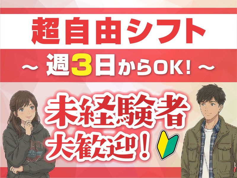 勤務時間・曜日: ①8:00~17:00 ②8:00~19:00 ③10:00~19:00 ★週3日以上勤務 ※がっつり週5日も歓迎♪