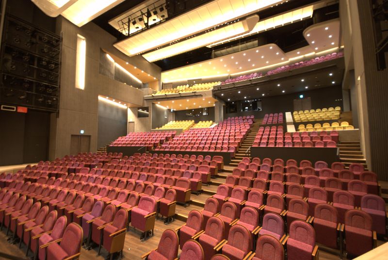 806席の文化ホール、図書館、カフェがある公共施設です。
