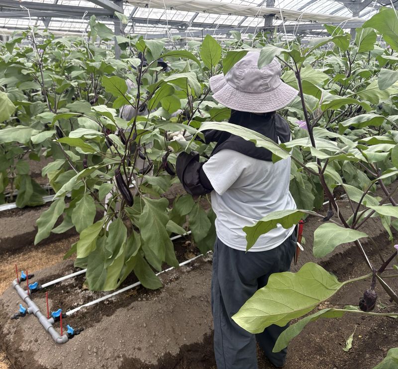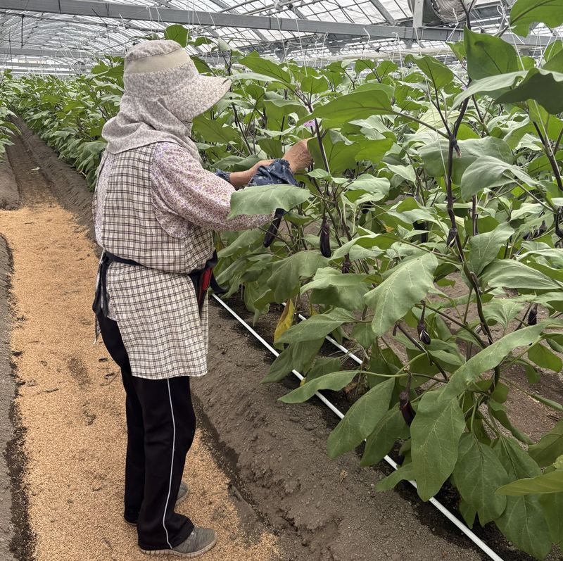 ナス農家収穫スタッフ