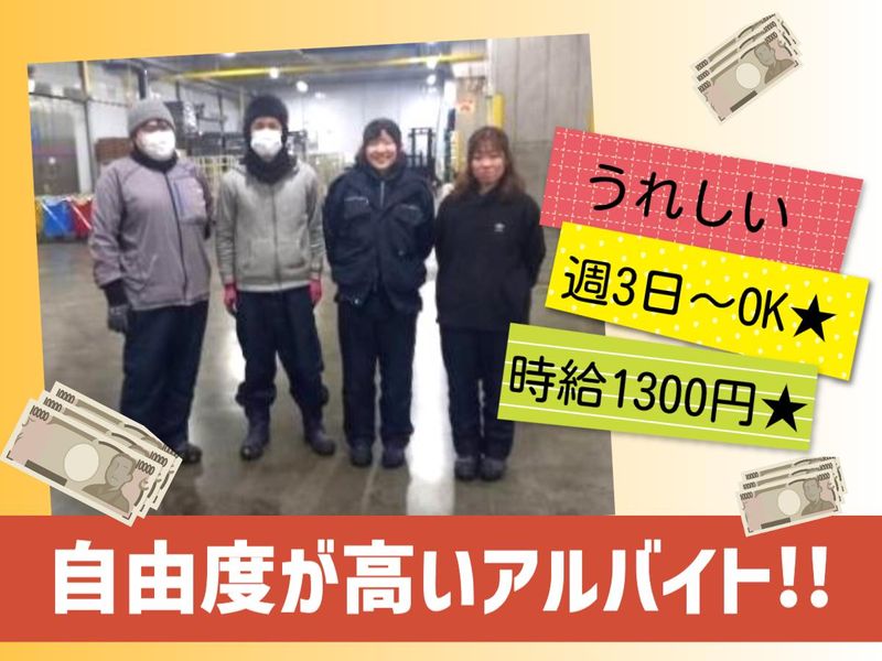 仕事内容 ⭐+⭐+⭐+⭐+⭐+⭐+⭐+⭐ 未経験も高時給1300円スタート! 選べる勤務時間&週3日~で 働きやすさ・続けやすさ抜群◎ ⭐+⭐+⭐+⭐+⭐+⭐+⭐+⭐ 時間帯をえらんで固定勤務ができるので、プライベートと仕事のメリハリをしっかりつけられる! 生活リズムを整えやすい日勤のみです◎ きれいな倉庫内で食品を扱った軽作業をお任せ! ◇仕分け・ピッキング ◇検品・品出し など <具体的な流れ> ■商品を専用機器でスキャン ■店舗・商品・個数を確認 ■指定のカゴに商品を仕分ける ■ボタンを押して完了! この4ステップを繰り返すシンプルな作業です! ※初めは仕分け作業の補助をお願いします。 コンビニやスーパーなどへ配送する商品なので、重たいものはありません。 指示通りに箱に詰めたり、数量を確認するだけなので難しい業務なし◎ 冷凍倉庫での作業ですが、防寒対策バッチリ!ずーっと中で作業するのではなく、こまめに休憩をとりますので、ご安心ください! 人と接する機会の少ないお仕事で、飽きずに働きたい!という方!ちょっと体を動かすコツコツモクモクの仕事でおこづかい稼ぎませんか? コツコツと集中して取り組める方なら、すぐに活躍できる環境です。 \\ココが推し!// ⭐固定勤務で予定も立てやすい♪ 3パターンの勤務から、お好きな時間を選択可能! ライフスタイルに合わせた働き方が叶います。 いずれもゆっくりの出社なので、早起きがちょっと苦手...な方にもおすすめです♪ ⭐送迎あり♪ JR香椎駅から送迎もあり! 公共交通機関で通勤したい方も安心◎ (詳細面接時) ⭐未経験でも安心♪ 軽作業デビューやブランクがあってもOK! 未経験スタートの先輩も多数活躍中です◎ ⭐体を動かしてスッキリ♪ ずっと座りっぱなしの作業は退屈という方にも! 運動不足も解消できちゃうお仕事です★