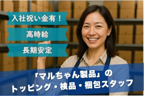 「マルちゃん」東洋水産(株)でのお仕事★<時給1350円>★入社祝金5万円支給(条件有)