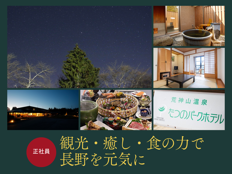 仕事内容 ◤ ̄ ̄ ̄ ̄ ̄ ̄ ̄ ̄ ̄ ̄ ̄ ̄ ̄ ̄ ̄ ̄ ̄◥ 地方で挑む、地域活性の仕事。 ホテル旅館、温浴施設、飲食から 地方創生に取り組みませんか? ◣_________________◢ 【4月にリニューアルオープン】 「草湯温泉 冠着荘」内の レストランにてキッチン業務をお願いします! 仕事に慣れた後は地方創生のための 企画などにも参加いただきます◎ << 仕事内容 >> ■料理・コースメニューの開発 ■調理・仕込み ■食材の仕入れ ■地域イベントや観光プロジェクトへの協力 (自治体・生産者との連携) 将来的に料理長を目指したい方に向け、 段階的にお任せしていくポジションです。 経験を活かして働きたい方や ステップアップしたい方は大歓迎! 頑張りを正当に評価する体制があり、 試用期間後すぐに料理長を任された方も…! 努力が報われる環境です◎ ※自治体・生産者との打ち合わせや、 スタッフ間の連携が多いため、日本語での 円滑な会話・読み書きが必須です。 ╭─────入社後の流れ─────╮ 先輩スタッフと一緒に、温浴施設・ホテル 飲食などの基本業務を習得。 未経験の方もしっかりサポート! ▼ 業務に慣れたら、地域の魅力発信や イベント企画、地元事業者との連携など 地域活性に繋がる取り組みにも参加! ▼ 将来的には運営改善や企画業務、 マネジメントなどへステップアップも可能! ╰────────────────╯ ⊹・ ┈┈┈┈┈ ・⊹ ・ ┈┈┈┈┈ ・⊹ ┏━━━━━━━━━━━┓ 地方を盛り上げるまちづくり ┗━━━━━━━━━━━┛ 都会の喧騒から一歩離れ、 「人の顔が見える暮らし」がしたい方へ。 筑北村はまだ完成していない村です。 自分の仕事が、そのまま地域の未来に 繋がります。 あなたの一歩が、確かな変化になる場所です。 ■活動実績  ̄ ̄ ̄ ̄ ̄ ̄ ̄ ・地域の祭りに出店 ・年に数回、住民に温浴施設を無料招待 ・学生向けに学習支援ルームを無料開放 ⊹・ ┈┈┈┈┈ ・⊹ ・ ┈┈┈┈┈ ・⊹ <当社が運営する施設(長野県内の一例)> ■宿泊・温泉施設 ・たつのパークホテル(辰野町) ・八ヶ岳温泉 樅の木荘(原村) ・ふれあいセンター もみの湯 (原村) ・草湯温泉 冠着荘(築北村) ・フォレスパ木曽・あてら荘(大桑村) 長野県内各地の観光・温泉施設の 運営・地域活性プロジェクトに携わっています。 また、都内を中心とした飲食事業の展開や、 他エリアでの観光・施設運営にも取り組んでおり、 地域にとらわれない事業展開を進めています。 ■ホテルならではの多彩なキャリア  ̄ ̄ ̄ ̄ ̄ ̄ ̄ ̄ ̄ ̄ ̄ ̄ ̄ ̄ ̄ ̄ ̄ ̄ レストラン業務だけにとどまらず、 希望や適性に応じて様々なポジションへ 挑戦できます。 本職は“料理人”ですが、 フロントやハウスキーピングなど 他職種へのジョブローテーションも可能◎ 「料理人×フロントでお客様ともっと関わりたい」 など兼務でお客様と関わる働き方もOK! 通常の飲食店では味わえない、 ホテルだからこそできる多彩なキャリアに 興味がある方にもぴったりな環境です。 年功序列ではなく、 意欲・行動・提案を評価する体制です。 ⊹・ ┈┈┈┈┈ ・⊹ ・ ┈┈┈┈┈ ・⊹ ┏━━━━━━━━━━━━━━┓ ✅草湯温泉 冠着荘について ┗━━━━━━━━━━━━━━┛ 冠着荘(かむりきそう) は、 長野県筑北村にある温泉旅館で、 学生合宿やスポーツ・文化系団体の宿泊利用が 多い施設です。 最大110名まで泊まれる大規模な宿泊体制と、 人工芝グラウンドや体育館など 合宿に最適な周辺環境が整っており、 練習・研修・交流の拠点として 幅広くご利用いただいています! 温泉「草湯くさゆ温泉」はアルカリ性の硫黄冷鉱泉で、 合宿後のリラックスにも人気です。 4月以降は日帰りのお客様も増え、 地域のイベント・交流の場としても活躍します◎