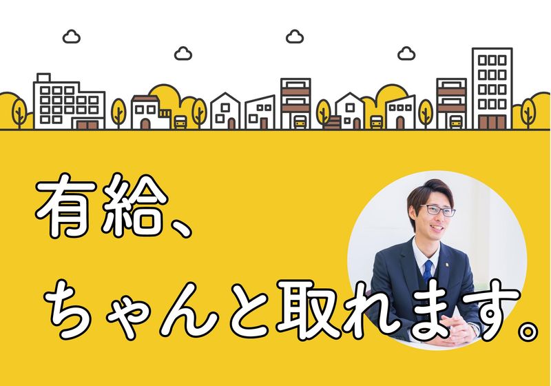 休日休暇 完全週休2日制(日曜・月曜) 祝日 ✅1年の1/3以上は休日です。 ✅長期連休は年3回!プライベートも満喫できます。 ✅週末はしっかり休めます。「家族サービスの時間が増えた」「友だちと予定が合わせやすくなった」などの声がたくさん! 【年間休日】 121日 ✅有給休暇と組み合わせて年間130日前後休む人も多数。140日近く休む人もいます。 【有給休暇】 ✅気軽に取得できます。利用目的も一切問いません。 【休暇制度】 ・GW休暇 ・夏季休暇 ・年末年始休暇 ・慶弔休暇 ・産前・産後休暇 ・介護休暇 ・受注着工 ・永年勤続 ・子の看護 ・災害 ・療養など