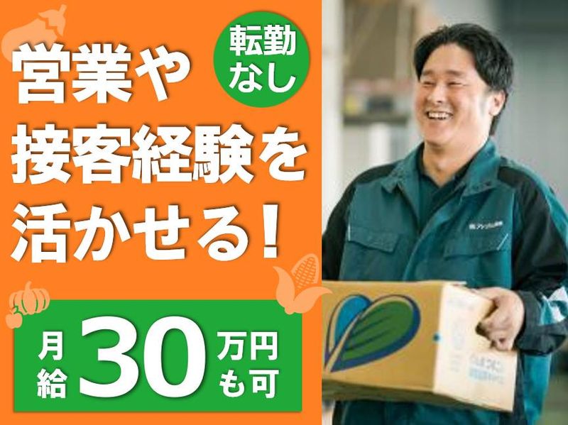 仕事内容 【今回募集のお仕事の特徴】 ★得意先へのフォロー中心 ★自然と野菜・果物の知識が身に付く! ★新規開拓なしで提案業務に専念 ★「食」への興味が活かせる! ★販促支援などアイデアを活かせる場面多数 【働きやすさのポイント】 ★業界・職種共に未経験者歓迎 ★20代・30代中心に活躍、第二新卒者歓迎 ★転勤なし ★研修充実でしっかり学べる環境 ★6:00~15:00勤務で夕方以降はフリー ★連休・大型連休の取得OK! ★健康経営優良法人2025(大規模法人部門)認定 ★ワークライフバランス充実 ★手当・福利厚生充実 ⭐26年3月より給与ベースアップ!⭐ 全エリアで【月給2.5万円のベースアップ】 毎年15%成長中の安定企業で将来も安心! 現行条件よりも、さらに収入アップが 見込める環境でキャリア形成が可能です。 【仕事内容】 既にお取引のある、顔なじみのお客様に、 野菜や果物の配送や、 商品提案、販促支援業務をお任せします。 <具体的には?> ◆担当顧客への納品・訪問 ┗注文いただいた野菜や果物を配送がてら、 新商品や旬の商品をご案内 ◆販促やサービス充実のための支援 ┗旬の野菜を活かした新規メニューの ご提案や、定番野菜の新たな用途などの 商品に関する情報の提供 ◆各種事務処理 ┗受注した商品の伝票処理など …他 <お取引先は?> 大手飲食チェーン店、有名ホテル、 婚礼場、医療機関・教育機関など 「食」を提供されている お客様がお取引先。 固定のお取引先・ルートになります。 <訪問スタイルは?> スーツで訪問するのではなく、 制服(作業着)での訪問ですので、 堅苦しさはありません。 納品業務もありますので、 訪問は1.5t~2tの小型トラックで 訪問します。 AT車も導入拡大中。 小さめの車種で、バックモニターや ドライブレコーダーもついているため安心。 すぐに慣れていただけると思います。 <未経験でも安心!の理由は?> ▼先輩の同行からスタート! ┗仕事の流れやコツを学ぶだけでなく トラックの運転にも少しずつ 慣れて頂きます。 ▼納品業務を通じて知識を吸収 ┗直接商品をお届けするので用途はもちろん 商品の「旬」の時期も知ることができます。 ▼少しずつ担当を引き継ぎ ┗基本業務に慣れてきたら、既存顧客を担当 配達先の担当者と会話を通して ご要望に応じた情報提供なども お願いします。 ✅独り立ち後もしっかりとフォロー! わからないことは、先輩スタッフが丁寧に教えてくれます! 【将来のキャリアパスは?】 ◆経験を積む中で興味のある方は 新規開拓にもチャレンジしていただけます! ◆管理職のポストをお任せするだけでなく キャリアチェンジも可能! ▶「市場の仕入れ担当」「経営企画」等 ✅評価において、社歴や年齢は一切関係ありません。 ★DX認定企業として、 働きやすさを追求しています! 当社は、経済産業省より【DX認定事業者】として正式に認定されました(2025年3月)。 これは、社員一人ひとりがより効率的に、 そして安心して働ける環境を整えている証です。 ✅たとえば、こんな取り組みを行っています! *自社開発の注文システム『FOLOS』*で、 24時間365日いつでも受注可能 → 電話やFAXのやり取りが減り、 事務作業がスムーズに! 自動納品書発行システムの導入 → 手書きや手入力の手間がなくなり、 ミスも削減! タブレットでのピッキング作業 → 倉庫内での作業効率がアップし、 事務所に戻る必要もなし! ⭐だから、こんな働き方が実現できています! 15時退社が当たり前に! 残業は月20時間以内に抑制 家庭や趣味の時間も大切にできる 未経験でも安心してスタートできる環境 「働きやすさ」と「効率の良さ」を 両立できるのは、 ITやデジタルの力を活かしているからこそ。 これからも、社員の声をもとに、 より良い職場づくりを進めていきます。 【当社について】 鹿児島県に本社を置く、 青果専門の卸売会社「フレッシュ青果」。 1996年の設立以来、 青果物の提案から配送までを 一貫して手がけ、地産地消や 生産者支援にも大きく貢献しています。 現在、全国に22拠点を展開し、県をまたいだ 広域ネットワークを持つ同業は非常に稀。 この体制は、当社ならではの強みです。 業績は好調で、年間売上は210億円を突破。 さらに、毎年約15%ずつ売上が伸びており、 年2拠点ペースで新拠点を開設しています。 この成長に伴い、 ポストチャンスも年々増加中。 「食に関わる仕事がしたい」 「安定成長する会社で長く働きたい」 「安定&高収入を得たい」など、 一人ひとりの想いを叶えられる環境で 食品流通のプロを目指しませんか?