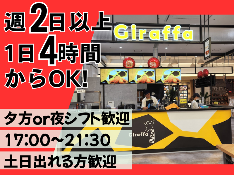 仕事内容 ✨夕方~夜シフト大歓迎✨ ⭐17:00~21:30で勤務できる方、 特に歓迎! ⭐大学生・フリーターさん活躍中! ⭐週2日~、1日4時間~OK! ⭐土日どちらか勤務できる方はさらに歓迎♪ ✨昨年7月OPEN✨  ̄ ̄ ̄V ̄ ̄ ̄ ̄ ̄ ̄ カレーパン専門店『Giraffa』 横浜ワールドポーターズ店 販売スタッフ募集中! 鎌倉で行列ができる人気店 「Giraffa」の姉妹店! ふるさと納税返礼品にも選ばれた 話題のカレーパンを、 横浜で一緒に届けませんか? お仕事の内容は…? フードホール内の店舗で、 カレーパンやカレーライス、ドリンクの 販売・接客をお任せします♪ 主な業務内容 ✅オーダー受付・会計 (キャッシュレス対応) ✅カレーパンの揚げ調理(最終工程) ✅カレーライスの盛り付け ✅ドリンクの作成 ✅商品のお渡し ✋メニューは少なめで、覚えやすく安心♪ ✋調理といってもシンプル! 未経験でもすぐ慣れます。 働く場所は…? 横浜ワールドポーターズ内 「ワールドフードホール」内の1店舗。 全18店舗・500席の 広々フードコートでの勤務です! 「気になる!」と思った方、 お気軽にご応募ください♪ カレーパン好きも、接客好きも、 大歓迎です! ◤ ̄ ̄ ̄ ̄ ̄ ̄ ̄ ̄ ̄ ̄ ̄ ̄ ̄ ̄◥ カレーパン専門店『Giraffa』 ◣______________◢ 鎌倉市のふるさと納税返礼品にも 採用されていて、 小町通りでいつも行列のできている カレーパン専門店。 普段のお食事やおやつなど、 手軽に食べられ、老若男女に愛される カレーパンを作り続けています。