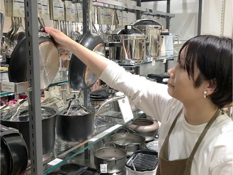 仕事内容 \キッチン道具の専門店/ 『212 KITCHEN STORE』は、「世界で一番素敵なレストラン それは我が家の食卓」をコンセプトにした、キッチン道具の専門店です。 お客様は20~60代の女性が中心ですが、最近は男性も増えています。 普段使いから新しい商品まで、欲しいキッチンアイテムを探しにいらっしゃいます。 店内には、世界中からセレクトした多彩なキッチンアイテムがずらりと並んでいます。 ご来店されたお客様に、楽しい時間を過ごしていただき、「また、来たい!」と感じる売場づくりを心がけています。 豊富なアイテム数の中でも毎月入荷する新商品やオススメ商品は、目立つように店舗レイアウトや商品陳列を工夫し、商品情報を伝える手書きのPOPを作成して紹介しています。 今後は、商品の良さを分かりやすくお伝えするため、実演販売も積極的に行なっていきます。 経験や知識も大切ですが、何よりも、食べることが好き!料理することが好き!人と接することが好き!という方なら大歓迎! 店舗メンバーと一緒に、大好きなキッチングッズに囲まれて、お客様に喜ばれる「お店づくり」を実現していきませんか? \店舗運営業務全般をお任せします/ <豊富なキッチンアイテム数> 商品カテゴリーは「つくる」「食べる」「片付ける」「食品」と大きく4つに分かれています。 取扱アイテム数は6000~7000にのぼり、毎シーズン3割程度は新商品が登場します。 また、キャラクターや食品メーカー様とのコラボ商品も展開しています。 <売場づくり> 来店されるお客様は店舗ごとに異なり、売れるアイテムやカテゴリーも違います。 そのため、イベントやキャンペーンの内容もお店に合わせてアレンジが可能です。 売れ筋商品の売上分析を行い、販売戦略を立てて、オススメのアイテムをピックアップし陳列、目立つように手書きPOPを作成する…そんな自由度のある売場を作っていけます。 <接客スタイル> お客様に商品の良さや使い方を質問された時は、分かりやすくお伝えすることが大切です。 まずは定番商品を覚えながら、毎月の新商品は、メンバーと一緒にポイントを押さえながら身につけていきます。 自分の言葉で丁寧にお伝えできると、お客様から喜ばれます。 今後は実演販売も行っていきますので、より具体的に商品の魅力を表現できるように商品体験会などでの勉強会を半期に1回実施しています。 \サポート体制も充実/ <入社後について> 配属店舗ではブロック店長からのOJTにより、店舗運営に関する業務を覚えていただきます。 シーズン毎にイベントやキャンペーンを行いながら扱うキッチンアイテムが異なるため、1年の経験を経て店長として独り立ちの予定です。 多彩な商品知識や接客スキルを身につけながら、お店づくりのノウハウを身につけてください。 <店長として> 売上管理やスタッフ管理、アルバイトの教育、入店している施設担当者とのやり取り、販売計画作成など、お店づくりとマネジメントの責任者としての業務を行っていきます。 もちろん、店長になるまではしっかりサポートするのでご安心ください! <キャリアプラン> 店長後は、ブロック長⇒エリアリーダーと、ステップアップを目指せます。 また、本部勤務へ異動することも可能です。 \店舗のメンバー構成について/ 1店舗あたりのメンバー構成は、正社員1名+パート・アルバイトで平均5名以上。 全員が協力しながら店舗運営を行っています。 スタッフは女性が多く、学生から60代まで幅広く活躍しています。 \店舗スタッフのやりがい/ <商品開発への情報提供> お客様との会話の中から、トレンドや欲しいアイテム情報を収集し、商品開発のアイデアとして本部に提案することも可能です。 キャラクターや食品メーカー様とのコラボ商品でも、採用された実績があります。 <レアな商品に出会える> 毎月たくさんの新商品が入荷されるため、見たことない商品にいち早く触れるチャンスも豊富にあります。 キッチンアイテム好きにはたまらない環境です。