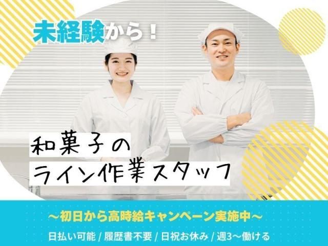 最初の1ヵ月は特別時給1400円!クッキーの製造・梱包等のライン作業!週3日~OK!日払いOK! ■高時給  ̄ ̄ ̄ ̄ ̄ 時給 1,400円スタート!※最初の1ヵ月間のみ 趣味や貯金などにも使える♪ ■シフト制  ̄ ̄ ̄ ̄ ̄ 週3日~(相談OK!) 無理なく働きたい、趣味の時間が欲しい そんな人でも働けます♪ ■日払い・週払いOK  ̄ ̄ ̄ ̄ ̄ ̄ ̄ ̄ ̄ ̄ 急な出費などにも対応☆ 振り込みだからどこでも受け取れます! ■交通費支給  ̄ ̄ ̄ ̄ ̄ ̄ ̄ 希望のエリアで働きたい♪ そんな方でもお財布の負担を減らせます! ■来社不要  ̄ ̄ ̄ ̄ ̄ ̄ お電話、WEBにて簡単登録OK