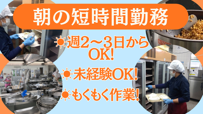 仕事内容: 朝だけ働きたい方にぴったりです。 短時間で、無理なく続けやすいお仕事です。 お任せするのは、介護施設での給食準備。 朝食や昼食の盛り付け、配膳、下膳、食器洗浄などをお願いします。 特別な経験はいりません。 最初は盛り付けや洗浄など、始めやすい作業から少しずつ覚えていけます。 「給食の仕事は初めて」 「厨房の仕事は久しぶり」 そんな方も大丈夫です。 未経験から始めやすい環境です。 _____ 朝の時間を使って、1日を気持ちよくスタートできます。 勤務時間は 6:00〜10:00 または 6:00〜12:00。 午前中で終わるので、午後の時間をしっかり使えます。 短時間なので、体力的にも無理なく続けやすいです。 「朝型の生活を活かしたい」 「長時間勤務はむずかしい」 「家のことや予定と両立したい」 そんな方に合う働き方です。 _____ この仕事のいいところ。 ・未経験でも始めやすい いきなり難しいことはお願いしません。 まずは盛り付けや食器洗浄など、覚えやすい作業からスタートします。 「自分にできるかな?」 という方も、 安心して始めやすいお仕事です。 ・短時間だから続けやすい 朝の4時間、または6時間勤務です。 長時間ではないので、生活リズムを崩しにくいのがポイントです。 週2〜3日から勤務OK。 無理のないペースで働けます。 ・もくもく作業しやすい 少人数の職場なので、落ち着いて作業しやすい環境です。 必要なときは声をかけ合いながら、基本は目の前の作業に集中できます。 「接客より、もくもく作業が好き」 そんな方にも向いています。 ・誰かの役に立っている実感があります 介護施設の食事は、毎日に欠かせないものです。 自分たちが準備した食事が、利用者様の生活を支えています。 「おいしい」と言ってもらえることもあり、 やりがいを感じられる仕事です。 ・通いやすさも魅力です 勤務地は袖ヶ浦駅から徒歩7分。 車通勤もOKです。 朝の勤務だからこそ、通いやすさは大事です。 続けやすい条件がそろっています。 _____ 朝シフトの1日の流れ 6:00 朝食準備 味噌汁を作る、ご飯・お粥を炊く、 おかずを配膳車へ入れていきます。 6:30 ご飯・お粥の盛り付け ご飯とお粥を盛り付け、配膳の準備を進めます。 味噌汁も配膳車へ入れていきます。 7:20 検品 内容に間違いがないか確認します。 7:45 各フロアーへ配膳 8:00 昼食の盛り付け 8:45 下膳 9:00 食器洗浄 10:00 終了 流れがある程度決まっているので、 一度覚えると動きやすい仕事です。 決まった流れの中で、丁寧に進められる方に向いています。 _______________________