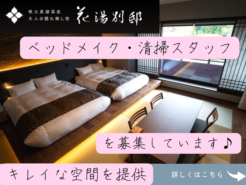 仕事内容 ー・ー・ー・ー・ー・ー・ー 荒川の景観が楽しめる くつろぎの宿・・・** ー・ー・ー・ー・ー・ー・ー 落ち着いた雰囲気の職場で 働きませんか? お任せするお仕事は、 ・ベッドメイク ・室内の清掃 など、ハウスキーピングのお仕事! 丁寧なサポートありで 未経験から始めやすいお仕事なので 安心してご応募くださいね** 主婦さん活躍中! 家事感覚でできちゃいます(>v<)b