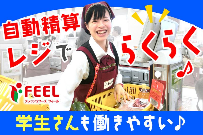 【アピールポイント】 ✨食品スーパー「FEEL」で働きませんか✨ パート・アルバイトさん大募集!! ✅自転車・原付・自動車通勤OK! ✅高校生や大学生も活躍中! ✅休日は午前中から働いて稼げる! ✅学業と両立しやすい!テスト期間などシフト考慮! 働きやすい環境と自慢の福利厚生でお迎えします!