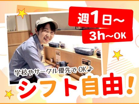 勤務時間 シフトサイクル:2週間 ★授業・テスト・サークル優先でOK! ★テスト期間は週0日も相談できます◎ 17:00~23:00の間でシフト制 ★週1日~/1日3時間~OK ★曜日相談OK(平日のみも大歓迎) < シフト例 >  ̄ ̄ ̄ ̄ ̄ ̄ ̄ ・17:00~20:00 ・18:00~22:00 ・17:00~23:00 ・19:00~23:00 「今日は短め」「明日は長め」 そんな調整もできます◎ その他の時間帯も お気軽に相談してください! < シフトの融通バツグン! >  ̄ ̄ ̄ ̄ ̄ ̄ ̄ ̄ ̄ ̄ ̄ ̄ ̄ ̄ 「今は週1だけ」 「長期休みはガッツリ」 「履修が決まったら調整したい」 「テスト期間は勉強に集中したい」 …ぜんぶOKです! 学校優先で、ムリなく続けられます。 バイトデビューにも◎