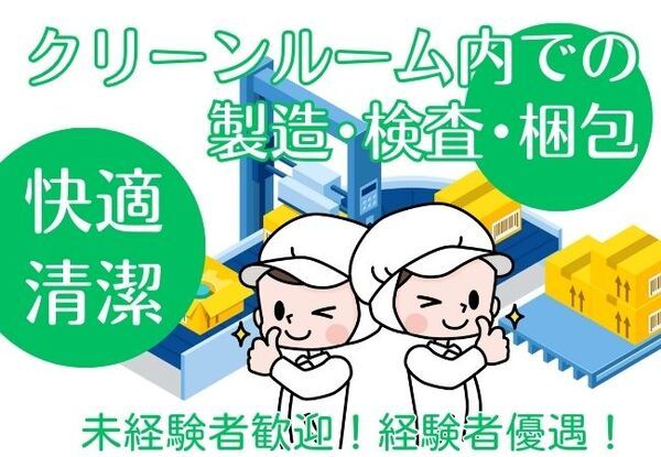キャップの検査・梱包・機械OPのバイト!クリーンルームで綺麗な環境です。
