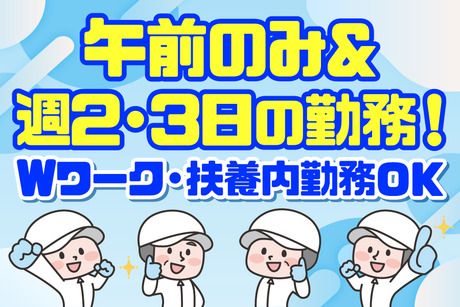 仕事内容 食品工場内での共用部の清掃になります。 ▼具体的には 泉佐野市住吉町の食品工場で 【事務所、トイレ、階段、手洗い場等】 の共用部清掃。 ▽お電話での応募も大歓迎▽ TEL:079‐443-5301 【Wワーク・扶養内勤務にピッタリのお仕事!】 ・基本は日祝休み! ・週2日~3日のシフト制なので融通を利かせながら勤務できる! ・1日3.5h程度!朝だけ勤務で無理なく勤務できますよ! ⇒Wワークや扶養内勤務を希望の方にもピッタリのお仕事です◎ スタッフのほとんどが未経験なので安心してスタートできますよ! 働き方はご相談ください! 《大手食品工場における総合衛生管理を主体とした総合ビルメンテナンス企業》 株式会社アイワは、食品工場の衛生管理、病院・公共施設など清掃などビルメンテナンス、施設やイベントなどの警備、と様々な事業に取り組み、「美しい環境創り」を通した社会貢献を目指しています。 また、子どもたちのお仕事体験や清掃活動、障害者就労支援、エコキャップ運動など、地域とのつながりを大事に、環境活動へ取り組んでおります。 《毎年右肩上がりに成長中!》 創業以来信用と実績を積み重ね、顧客満足と人材育成に力を入れ、毎年右肩上がりに成長中! 建築物環境衛生総合管理業の認定や「ISO9001」の認証を取得する等、景気に左右されず安定した経営を行っております。 どんな会社か気になって頂けた方、ぜひ面接にてお話ししましょう! HPはこちら>http://aiwa-web.com お問い合わせもOK!お気軽にご連絡ください! TEL:079‐443-5301 《「アイワ」の由来》 平成6年4月、創業者が常に「お客様から愛(アイ)される会社」作りと、仕事に大事なチームワーク「人の輪(ワ)」を築き、永遠に成長していく会社にしたいと考え、「アイワ」としました。