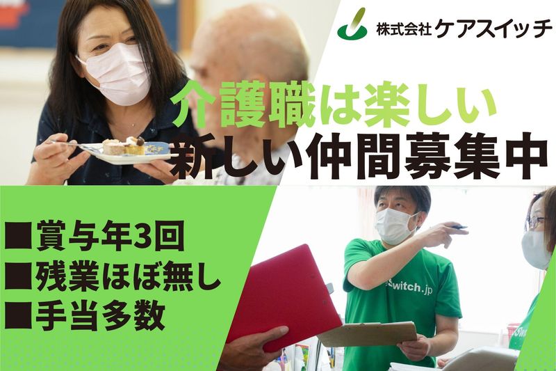 仕事内容 ・✦・………・✦・………・✦・………・✦・ ⏩先日テレビでも取り上げられました⏩ ビジネス系のニュースサイト ~株式会社ケアスイッチ~ ⇒大手動画サイトで「ケアスイッチ」と 検索してみてください! SNSを通じて会社の雰囲気も感じてください 大手検索サイトでも検索でトップに 表示されます♪ ・✦・………・✦・………・✦・………・✦・ ⭐⭐見学大募集中⭐⭐  ̄ ̄V ̄ ̄ ̄ ̄ ̄ ̄ ̄ ̄ ̄ ̄ ̄ ̄ ̄ ̄ ̄ ̄ ̄ 面接で初めて施設を訪れると、 想像と違っていたことはありませんか? 当社ではそういったミスマッチを防ぐために 施設見学を毎日受け入れています! お電話で直接のお問い合わせもOKですので、 お気軽にご連絡ください。 ◯。*.. ◯。*.. ◯。*.. ◯。*.. ◯。*.. ✎見学&面接希望のお電話はこちらから✎ 電話番号 0276-61-3906 お問合わせください。 ◯。*.. ◯。*.. ◯。*.. ◯。*.. ◯。*.. ✅研修制度 *社内研修年2回開催 *随時、研修会への参加 *毎月ケア会議の実施と勉強会 *元介護福祉士養成校教員2名による 資格取得向けての指導あり *⭐仕事内容⭐* ━━━━━━━━━━━━━━━━━━━━ 住宅型有料老人ホームの介護業務 (全個室で23室)、当施設に入居している 方への介護のお仕事です。 ✅食事介助 ✅排せつ介助 ✅洗濯 ✅掃除 ✅おやつ作り ✅イベントサポート ✅生活相談など 住宅型有料老人ホームでは、 ・ご自宅での生活が不安な方 ・介護施設等への入居をご希望の方 ・特別養護老人ホームへの入居待ちの方 ・認知症等で24時間の見守りが必要な方 ・病院を退院しても自宅での生活が不安な方 が一緒に生活されています。 人数が少なく家庭に近い雰囲気での ケアとなります。 自立できる方もいらっしゃるため、 比較的負担は小さめです。 未経験の方も、わからないことは何でも 聞けますので、安心してスタートして いただけます。 ⏩株式会社ケアスイッチについて⏩ ━━━━━━━━━━━━━━━━━━━━ 群馬県を中心に5つの施設を運営して おります。 設立以来、増益増収を続けており、 安定した経営基盤があります。 入居者様が日々満足な生活が送れるよう 私たちはトータルで支援しております。