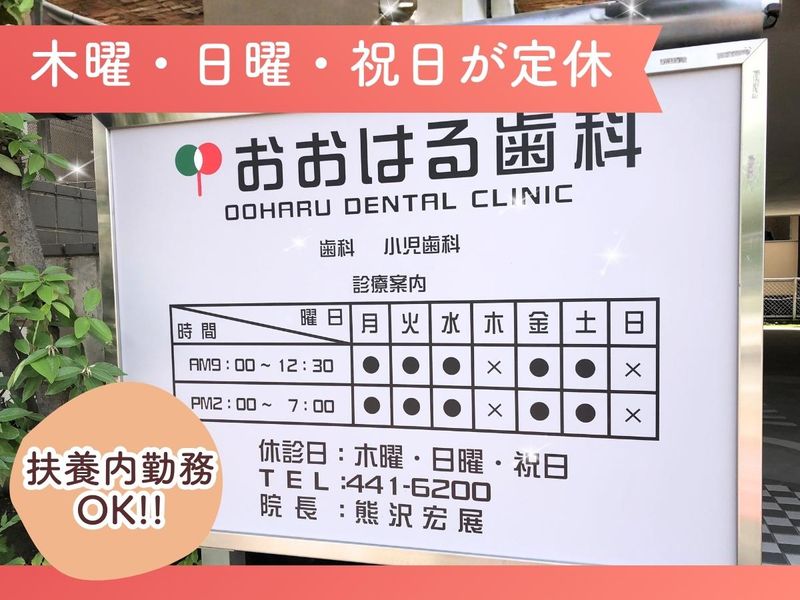 仕事内容 / 午前中に働ける方、大歓迎⭐ \ ▹◃┄▸◂┄▹◃┄▸◂┄▹◃┄▸◂┄▹◃ 【✅未経験歓迎】研修ばっちり! 【✅シフト柔軟】週3日~OK! 【✅お弁当支給】午前/午後を跨ぐ勤務時 【✅綺麗な院内】落ち着いた雰囲気♪ ▹◃┄▸◂┄▹◃┄▸◂┄▹◃┄▸◂┄▹◃ \\ // // 主婦さんが活躍中!! // // \\ <仕事内容> ■患者様のご案内 ■器具の準備 ■診療の補助サポート ■使用後の器具の消毒 ■使用後の歯科用チェアの消毒 ■備品の在庫管理 などをお任せします! 慣れてきたら受付業務も お願いできればと思っています! ┏ ━━┅━━━━━━┅━━ ┓ 「●●さん、元気そうだね!」 「お孫さん、歯が生え変わりましたね!」 地域に根差しているからこそ 患者様と密接に関わることができ 感じられるやりがいがあります! ┗ ━━┅━━━━━━┅━━ ┛ ✧˖°-✧˖ ✨未経験の方もご安心ください✨ ✧˖°-✧˖ 未経験からスタートした スタッフが多数活躍中! 薬品や器具の名前は1つずつ 覚えていただければOKです! ✧˖°-✧˖ ✨8:30~12:30勤務できる方歓迎✨ ✧˖°-✧˖ 扶養内勤務OK! 希望勤務時間はお気軽に ご相談くださいね! 午前と午後どちらも勤務の方には お弁当を支給しています♪ ✧˖°-✧˖ ✨シフトはみんなで助け合い◎✨ ✧˖°-✧˖ 余裕を持った人員編成をしているので 「子供が熱を出して…!」 「この日は子供の学校行事が…!」 といったことにも対応可能です! ✧˖°-✧˖ ✨外部への研修参加も可能です✨ ✧˖°-✧˖ ご希望の方は歯科助手の講習会へ ご参加いただくことも可能です! 講習・研修中も時給発生!! ⭐スタッフからコメント⭐ ╰━━━━━━v━━━━╯ スタッフ同士はほんとに仲良く 子育ての相談話をすることも! 未経験で不安でしたが、 先輩スタッフが優しく教えてくれ ここなら続けられそうと思えました! Tさん/主婦パート