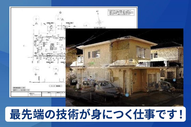 仕事内容 あなたも「手に職」をつけて、 安定した収入と自由な働き方を手にしませんか? 今、測量は「デジタル測量」へと変化。 従来の測量とは違い3Dスキャナなど、最新のデジタル技術を使って地形を正確に記録。 国が推進する分野のため需要も高く、安定性も抜群。 何よりも全くの未経験から資格もなしにチャレンジできる仕事になりました。 「技術を身につけたい」 「手に職をつけたい」 「独立したいけど、少し不安がある」 「やった分だけ稼ぎたい!」 そんな方にはぴったり。 現場での撮影とPCでのデータ処理を組み合わせた“スマートな仕事”で、市場価値の高いスキルを獲得できます。 【仕事内容】 地上型3Dレーザースキャナーを用いて、戸建て住宅の建設に欠かせない基礎データを高精度で提供して設計、施工の向上に貢献できる仕事です。 【具体的な業務内容】 ・最新鋭の設備(3Dスキャナー)を使用し、 戸建て住宅を中心に地形の高さ、長さ、面積などを測量、データ収集 ・ベトナムのCADセンターへの作図指示業務、またそれらの成果品のチェック及び納品業務 測量機械を使用すると、人の経験値・技量に左右されない図面が作成できます。 業務は簡略化されていますが 経験知識を積み、最新技術を使いこなす力を 身につけられるため、 市場価値を高めることも可能です!