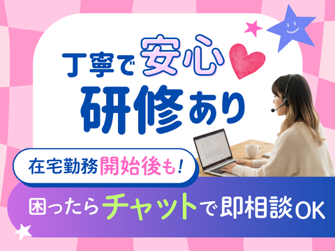 求めている人材 ✅業務中の質問などもチャットで行うため タイピングが可能な方(目安:30~40文字/分) ✅高卒OK ✅在宅勤務可能な方 ✅約4週間程度の研修(薬院)へ参加可能な方 ✅在宅開始後の定期面談時などに事務所(薬院)へ出勤が可能な方 業界・コールセンター・オフィスワーク未経験の方も大歓迎! 「17時までに退社で安定して働きたい」「在宅で働きたい」 「テレワーク・リモートワークがしたい」 そんな方にぴったりの環境です。 - こんな方が活躍中のお仕事です - ・家事や育児と両立したい主婦(主夫)さん ・社会復帰を目指すブランク復帰希望の方 ・通勤時間を減らしてプライベートを充実させたい方 ・新しい環境でスタートしたい第二新卒、既卒の方 ・長期で安定して働きたいフリーターさん ・フルタイムでしっかり、でも土日は休みたい方 現在、30代・40代・50代を中心に幅広く在籍中。 「接客経験を活かしたい」という方が楽しく働いています◎ - こんな経験が活かせます - 【1】オフィスワーク・電話対応 事務、データ入力、受付のほか、テレフォンオペレーター(テレオペ)、 テレアポ、カスタマーサポート、ヘルプデスク、コールオペレーター (インバウンド・アウトバウンド)などの経験。 【2】サービス・接客販売 スーパー、アパレル、カフェ、コンビニなどの接客・販売経験。 店舗様への丁寧なご案内がメインなので、 お客様に寄り添うスキルがそのまま活かせるお仕事です!