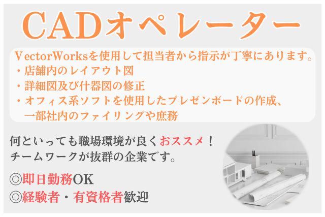CADオペ!スクール卒歓迎!CADソフトも問わず幅広く募集!