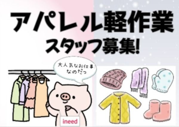 仕事内容 ◆主な仕事内容◆ ☆来店されるお客様へ、アパレル商品販売等のお仕事☆ お客様の要望にあわせて提案したり 購入の際の処理などを行っていただきます! 最初は緊張するかもしれませんが ゆっくり丁寧にお仕事をしていれば大丈夫! 最初は簡単なご案内などから始めて、徐々にお仕事に慣れていきましょう! 丁寧に教えてくれるので、接客初めての方やアパレル業に詳しくない方でも安心です! ★オススメポイント★ アイニードは希望すれば、日払いや週払いが利用できるので急な出費も安心♪ 詳しくはお問い合わせください! 商業施設内だから冷暖房が効いていてお仕事環境◎ 客層・来客数も安定しているので落ち着いて、丁寧に接客ができます! 髪色は茶色くらいならOK! ネイルもジュエリーを傷つけない程度のものならOK! ☆人と話すことが好きな方におすすめ☆ お客様一人一人に寄り添った接客ができるので、 接客は好きだし、人と話すのも好きだけど、 時間に追われる接客などは苦手と言う方におすすめです♪ ゆっくり自分のペースでお客様の対応ができるので、 初めての接客にチャレンジしたい方にもおすすめです! ショッピングモール内の店舗なので、 お仕事の前後の時間に買い物も出来ちゃいます♪ :+:・-・:+:・-・:+:・-・:+:・-・:+:・-・:+: 【株式会社アイニードで働くメリット】 その1:来社一切不要です!(お電話等でラクラクリモートでの面接実施中) その2:給料は日払い・週払いOK※規定有 その3:お仕事スタートまで最短3日!(平均3~5営業日) LINE・メッセージ・メール・電話…お困り事はいつでも相談可能です! :+:・-・:+:・-・:+:・-・:+:・-・:+:・-・:+: ☆キャリアアップ支援☆ eラーニング制度あり! ・充実した約5000のコンテンツ(簡単な脳トレやPCスキル、健康管理、語学学習、AI基礎知識等)を無料で受講OK 初心者向けの講座から上級者向けの講座まで幅広いレベルの講座があります! ・24時間いつでもどこでも受講OK お仕事の休憩時間やお休みの日などお好きなタイミングで受講可能です! ・何度でも復習や見直しなど可能◎自分のペース進めていけるので安心☆ 勉強したけど再度確認したい時やもう1度見てみたい等も大丈夫! スキルUPにご利用ください☆ :+:・-・:+:・-・:+:・-・:+:・-・:+:・-・:+: