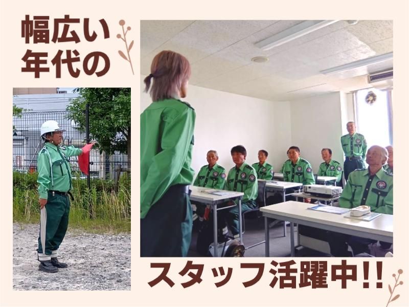 求めている人材 *法定研修(同条件) *20代・30代・40代・50代・60代・70代までの男女活躍中 *ミドル・シニア世代も多数活躍中! *フリーター、ブランクOK 「学業と両立している大学生」 「扶養内で働く主婦(夫)」 「本業と掛け持ちのWワーカー」 「お小遣い稼ぎのシニア世代」 など、色々な方が活躍中です♪ 法定研修あり&サポートあり! 未経験から始めたスタッフも多く在籍中♪ 早期退職後のセカンドキャリアで働く方も活躍中です! <警備業の経験ゼロでも大丈夫!> お仕事前にしっかり研修します! 研修中も給与は通常通り支給します! 警備業の経験がある方は即戦力! 年齢の条件と理由:あり(18歳以上(警備業法))
