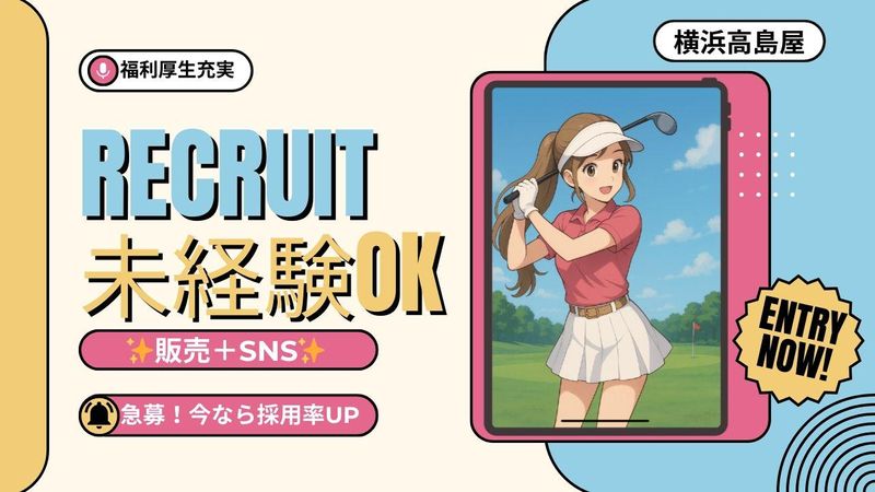 仕事内容 未経験歓迎◎立地◎横浜高島屋でお仕事♪ 高時給、カワイイ制服支給あり♪ 『スマホ』で簡単WEB面談、即日面談対応! ✨オススメポイント✨ ・履歴書不要でお仕事スタート ・来社不要、スマホで簡単WEB面談 ・未経験OK、高時給 ・立地抜群、横浜高島屋 ・長期安定、正社員登用あり(※自社) ・即日勤務対応 ・制服支給、社割あり 【お仕事内容】 ・接客販売 ・在庫管理 ・SNS投稿用の写真撮影 ・SNS配信 ・SNS管理 横浜高島屋でゴルフウェア、雑貨の接客販売と SNS投稿用の写真撮影や配信をお願いします。 ✅ゴルフ未経験歓迎 クラブ販売なし! ウェアと雑貨販売の為難しい知識不要です! アパレル、雑貨の販売経験者活かせます✨ (^^)/ゴルフを始めたので興味がある (^^)/SNSの投稿が得意! そんな方も歓迎です。